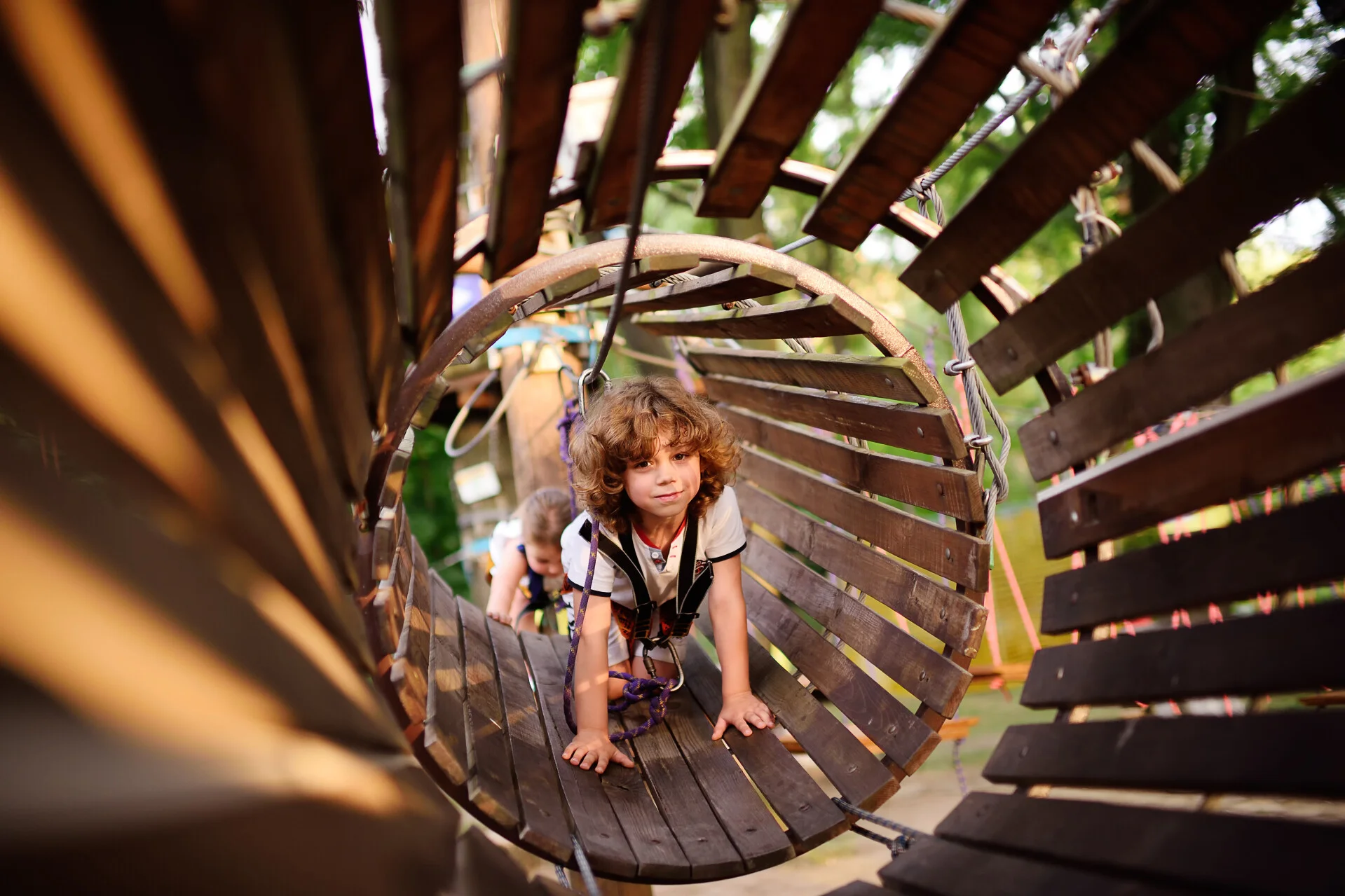 Empiece el día con una gran dosis de energía en I Feel Wood: parque de arboles que ofrece recorridos adaptados a partir de los 2 años para trepar, saltar y reír con total seguridad. Los pequeños aventureros pueden probar sus primeras sensaciones, mientras que los más mayores se lanzan un poco más alto: un auténtico parque infantil en plena naturaleza para empezar bien el día.